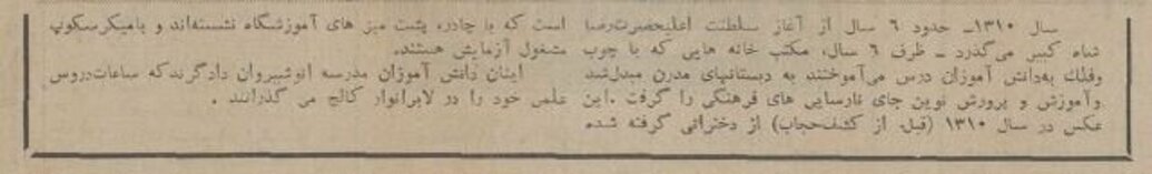 از رویداد کشف حجاب در سال ۱۳۱۴ کلاس مدارس دخترانه تهران با حجاب برگزار می شد. از مدارس این دوران تصاویر بسیار اندکی وجود دارد. روزنامه اطلاعات ۱۷ مهر ۱۳۵۴ عکسی به انتخاب سردبیر منتشر کرده که دختران را در آزمایشگاه شیمی مدرسه انوشیروان دادگر در سال ۱۳۱۰ نشان میدهد.