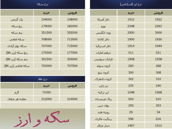 جدول/ قیمت روز سکه و ارز