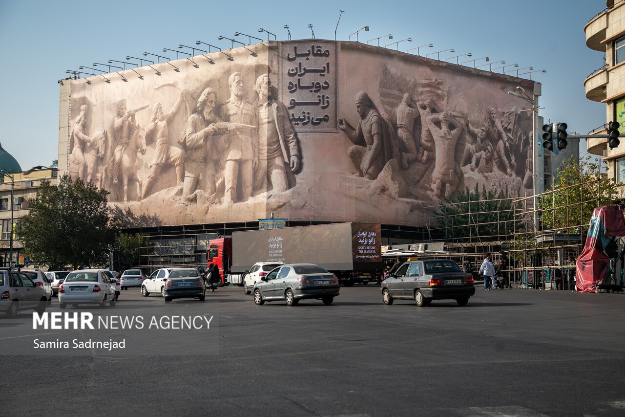 عکس| رونمایی از طرح جدید دیوارنگاره میدان انقلاب