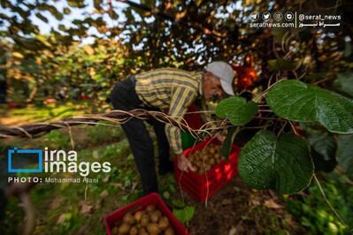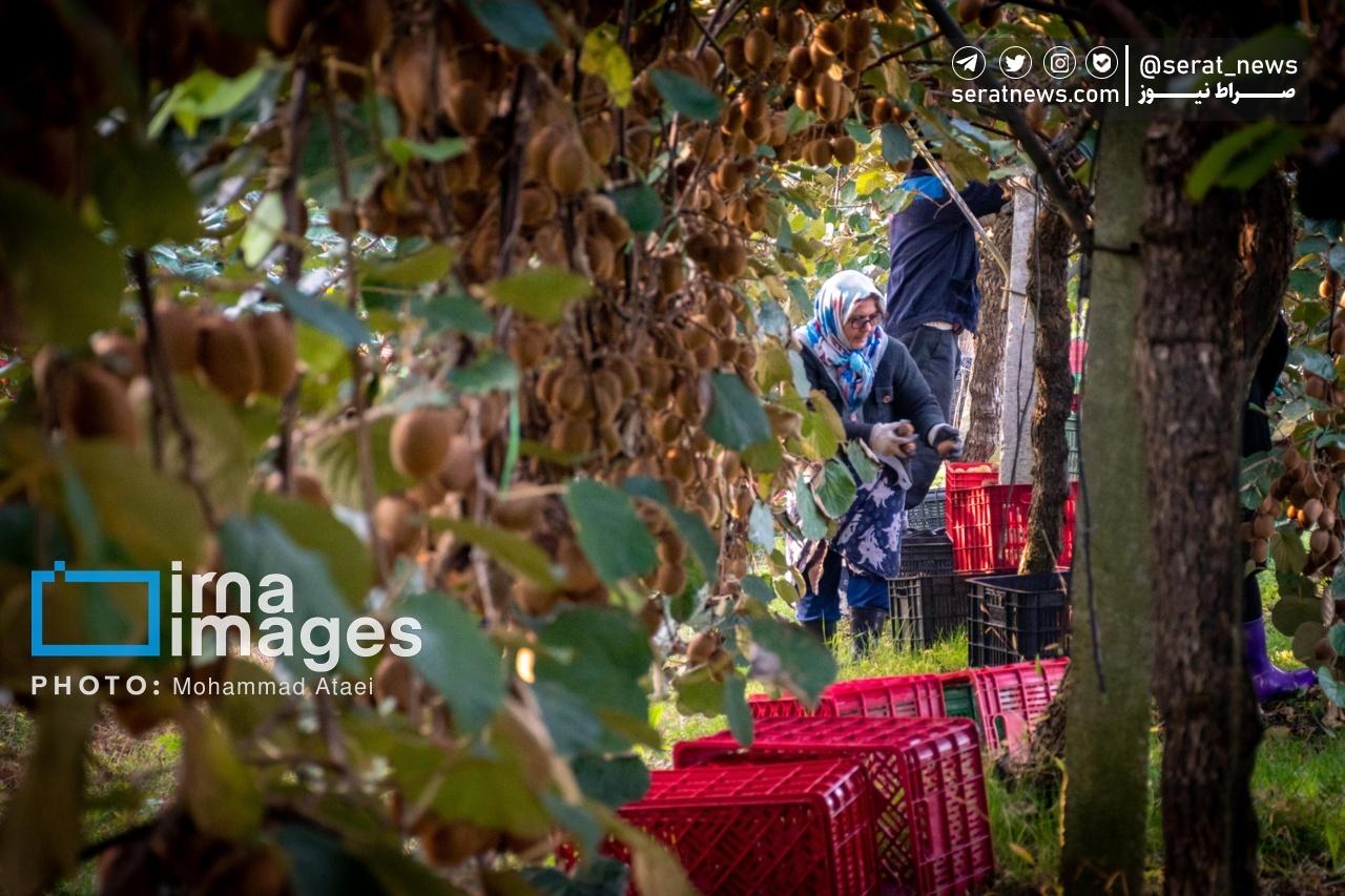 تصاویر| برداشت کیوی روی شانه زنان شمال