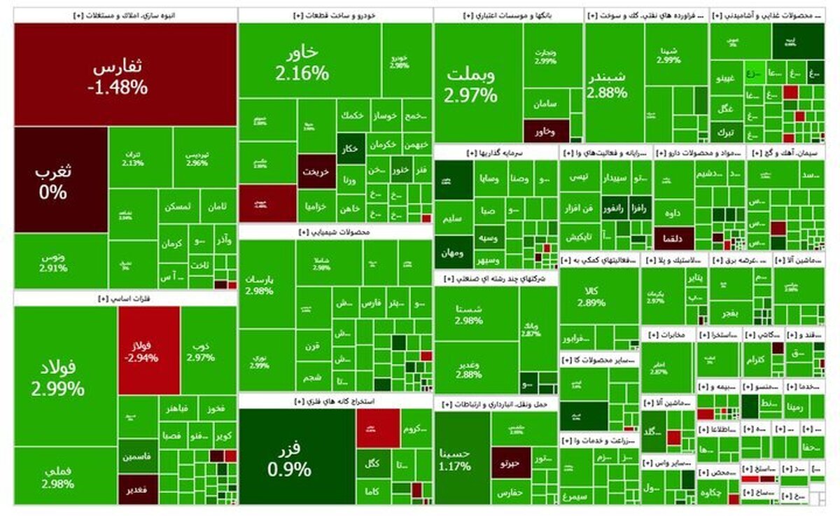 به گزارش صراط به نقل از ایرنا، بورس تهران در معاملات امروز با افزایش تقاضا در بیشتر نمادها روند صعودی به خود گرفت و سهمهای بزرگ و کوچک بازار هر دو در محدوده مثبت معامله شدند. شاخص کل با رشد ۰.۷۶ درصدی و شاخص هموزن با ۰.۶۸ درصد افزایش، روند صعودی شاخصهای اصلی بازار را تثبیت کردند.