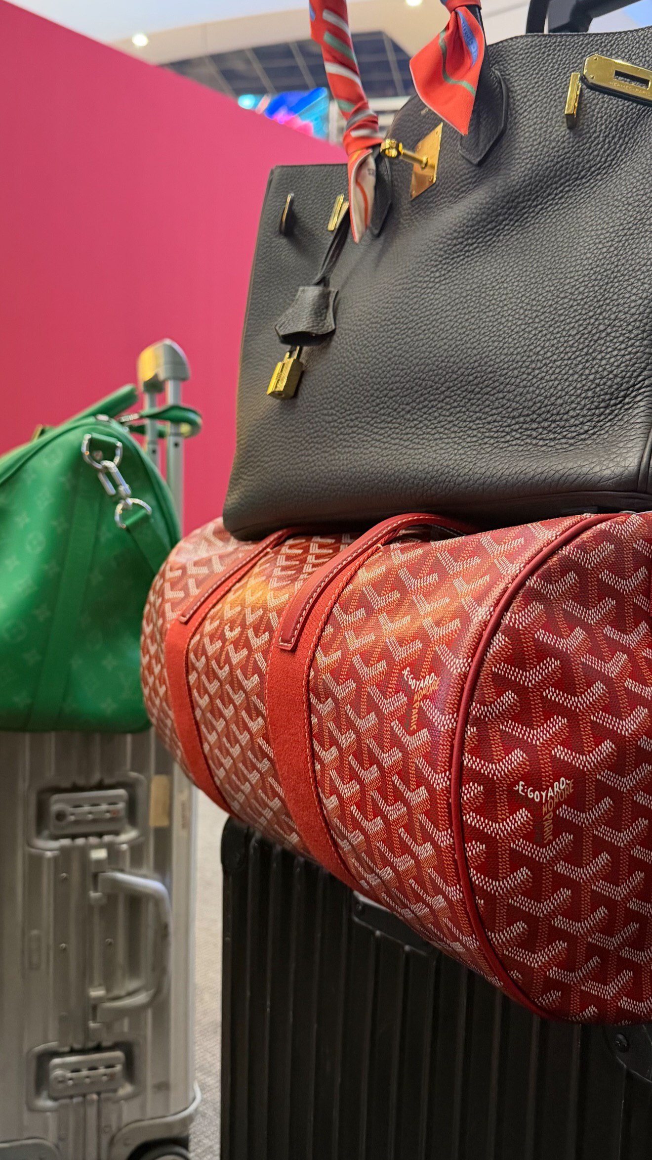 در میان وسایل به چشمخورده، کیف دستی همسر گلزار از برند لوکس «هرمس» دیده میشود. همچنین یک ساک دستی از برند فرانسوی «گویارد» و یک ساک سبز رنگ از برند «لویی ویتون» نیز در تصویر قرار دارد؛ برندهایی که به قیمتهای بالا و سبک زندگی خاص شناخته میشوند.