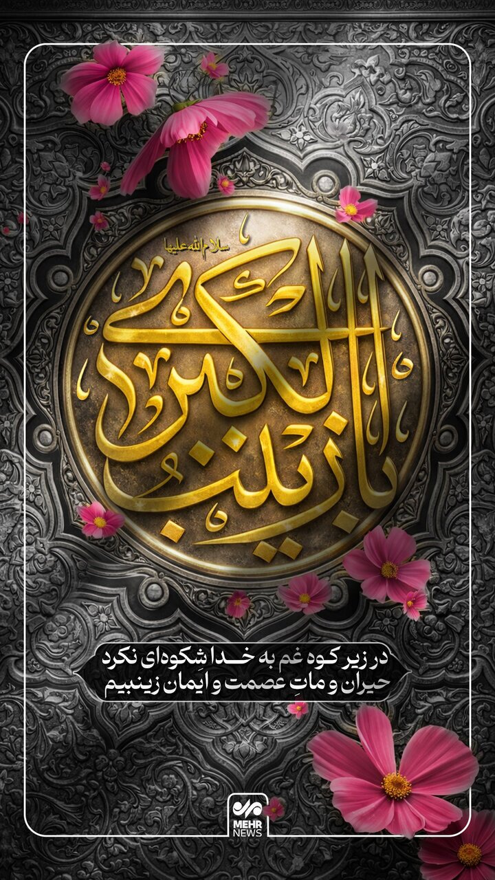 تمام زمین و زمان بر کربلا می‌گریند و تمام کربلا بر زینب(س)؛ وفات حضرت زینب(س) تسلیت باد. طراح: سعید همتی