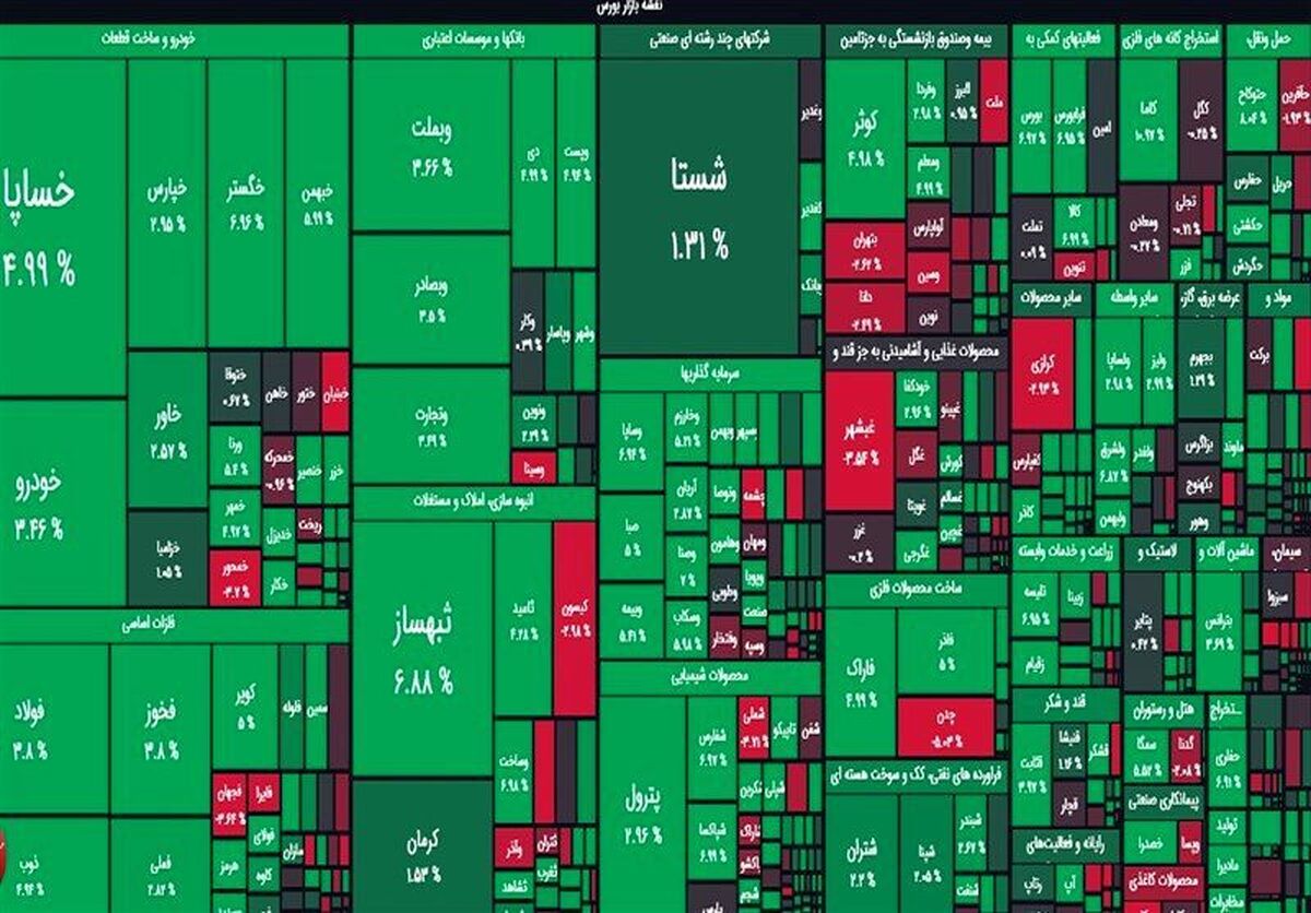 امروز تعداد سهام مثبت بورس ۳۰۵ عدد و سهام منفی ۵۰ عدد بود. تعداد خریداران به ۸۶ هزار نفر رسید. به طور کلی بازار ۲.۵۸ درصد افزایش یافت.