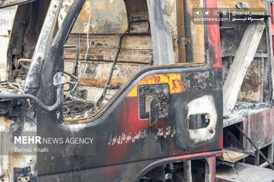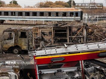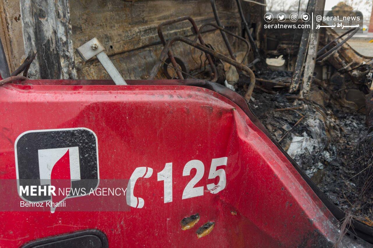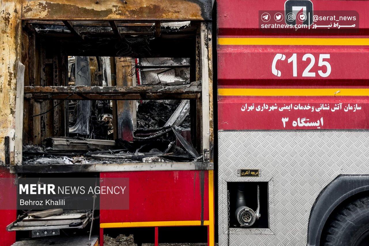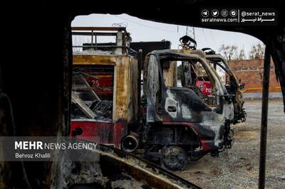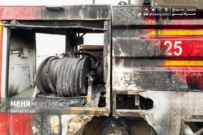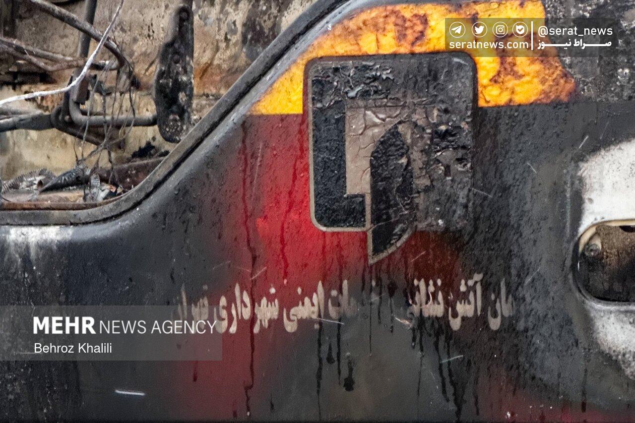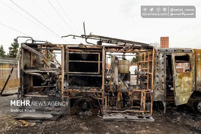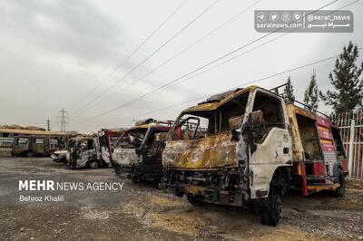 تصاویر| خسارات وارده به ماشینهای آتشنشانی تهران
