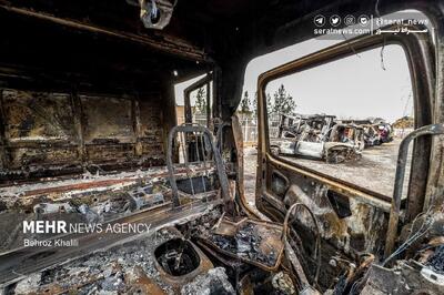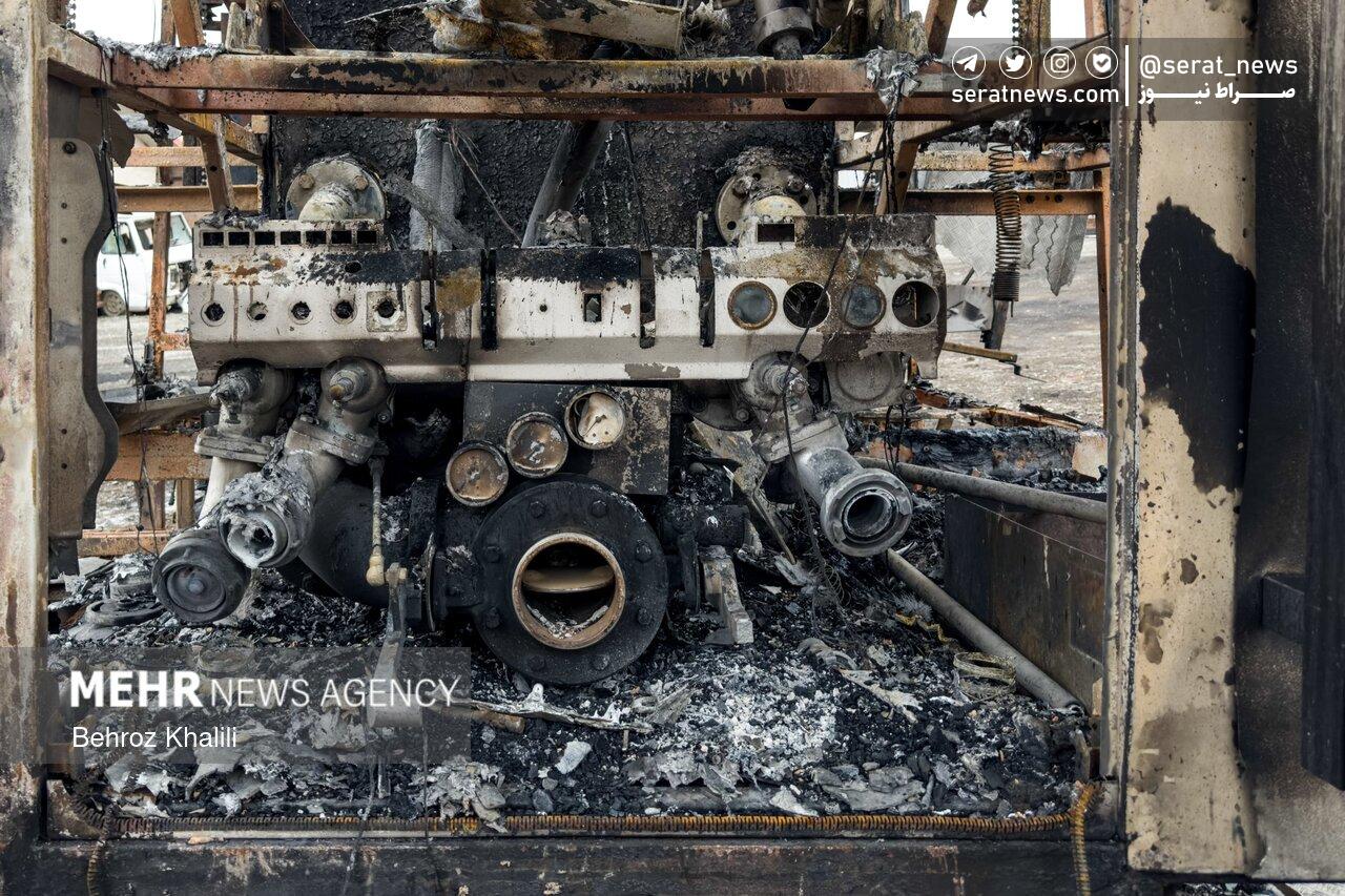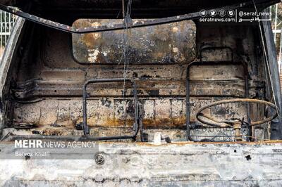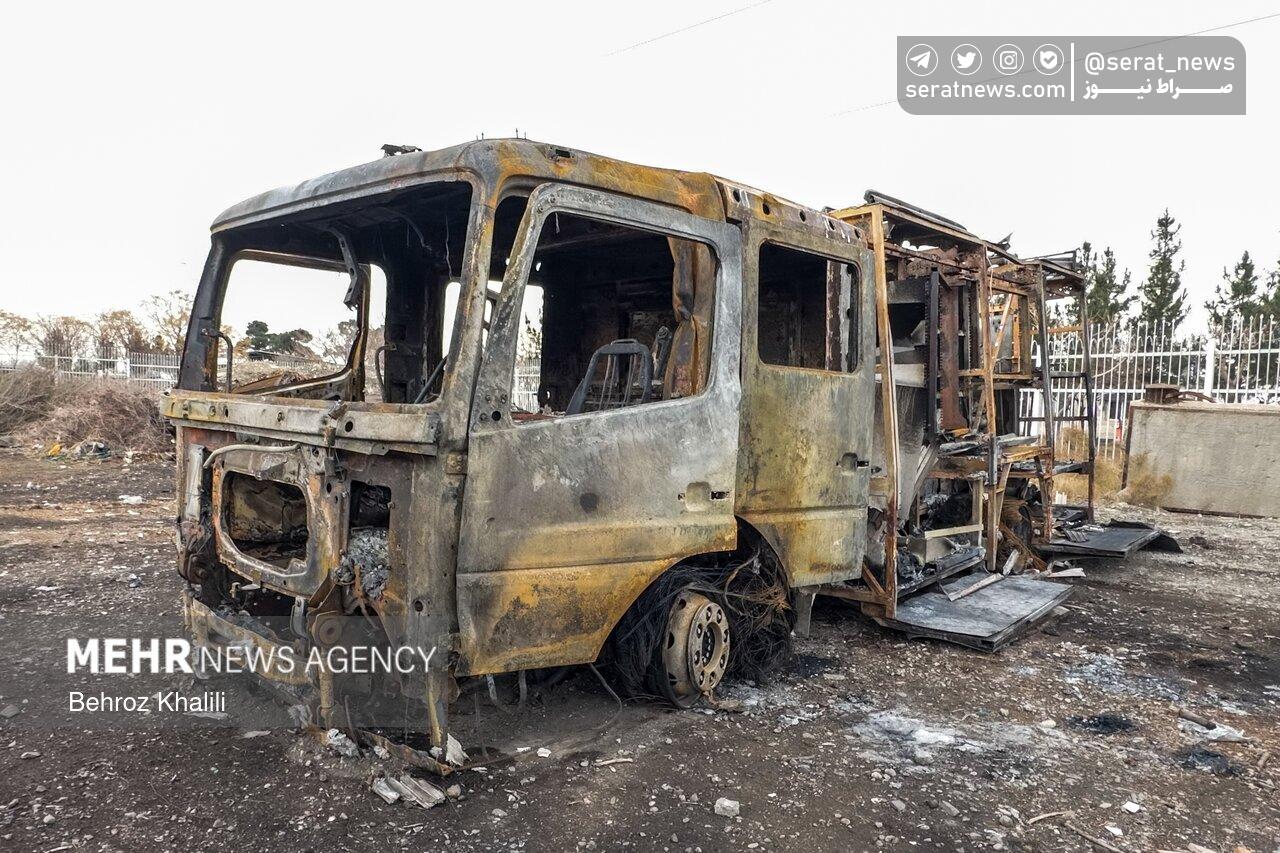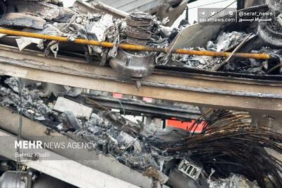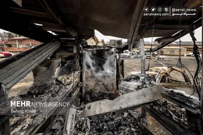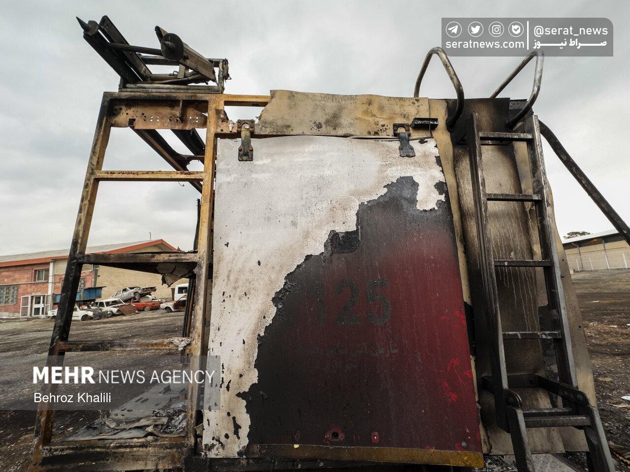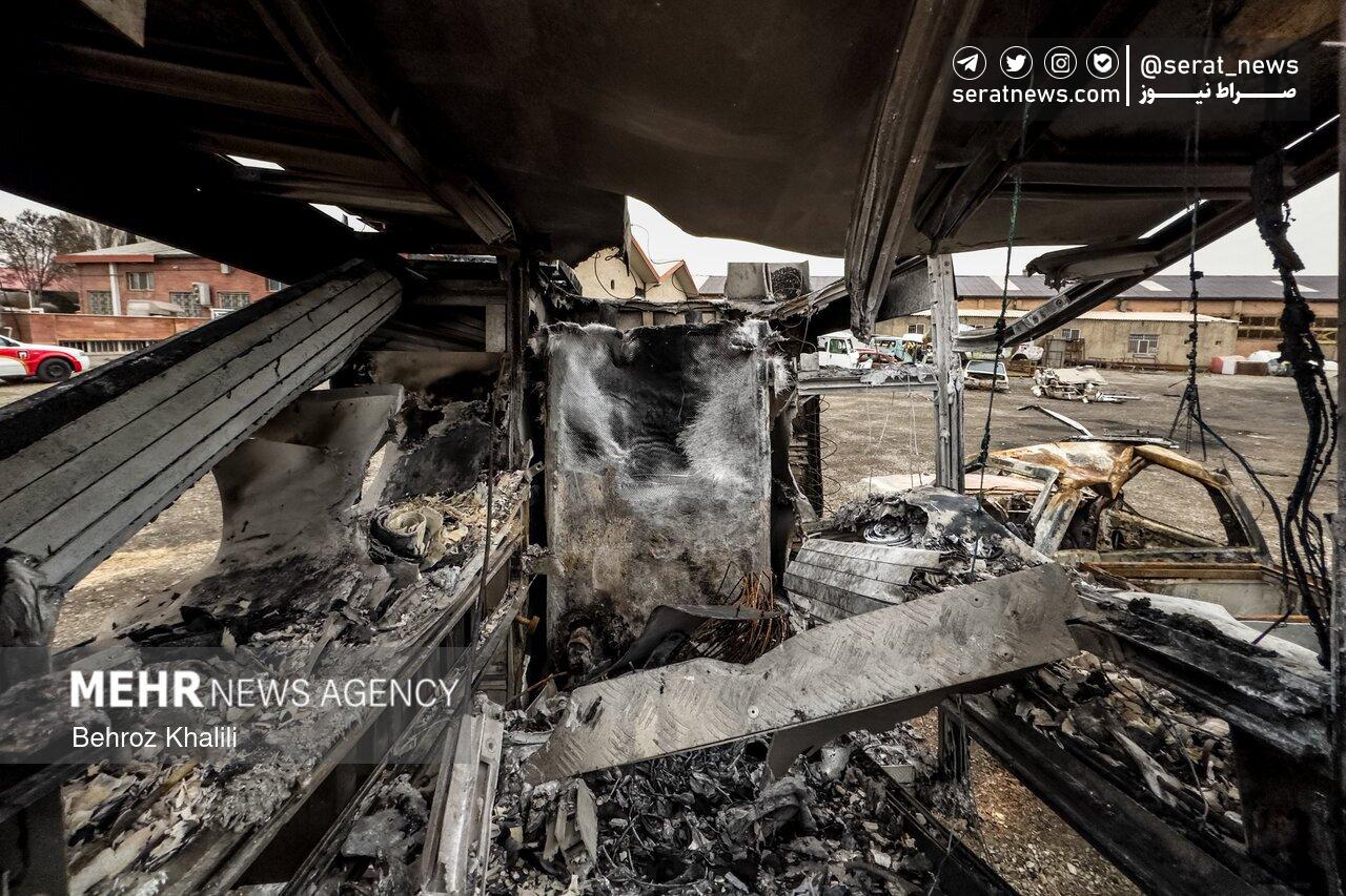 تصاویر| خسارات وارده به ماشینهای آتشنشانی تهران