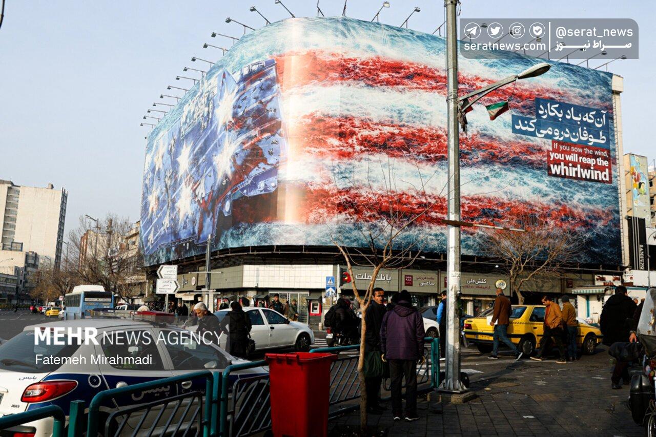 جدیدترین طرح دیوارنگاره میدان انقلاب اسلامی تهران با عنوان «آنکه باد بکارد طوفان درو می کند» رونمایی شد.