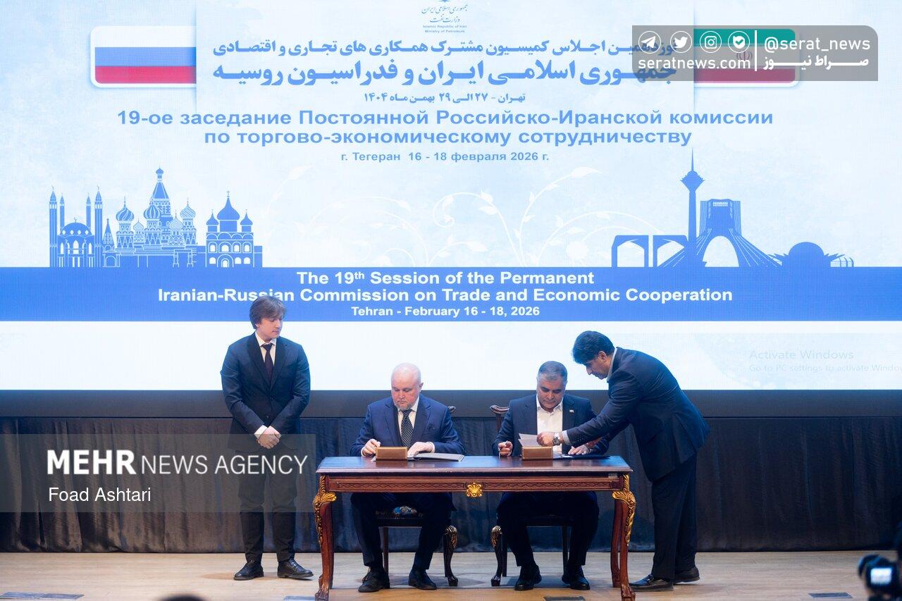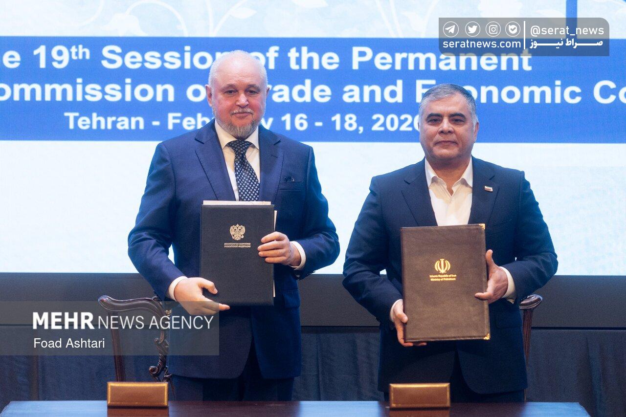 نوزدهمین اجلاس کمیسیون همکاری تجاری اقتصادی ایران و روسیه صبح امروز چهرشنبه ۲۹ بهمن ۱۴۰۴ با حضور محسن پاکنژاد وزیر نفت ایران و سرگئی تیسیلیوف وزیر انرژی روسیه برگزار شد و قرارد های مشترک همکاری مابین دو کشور به امضا رسید