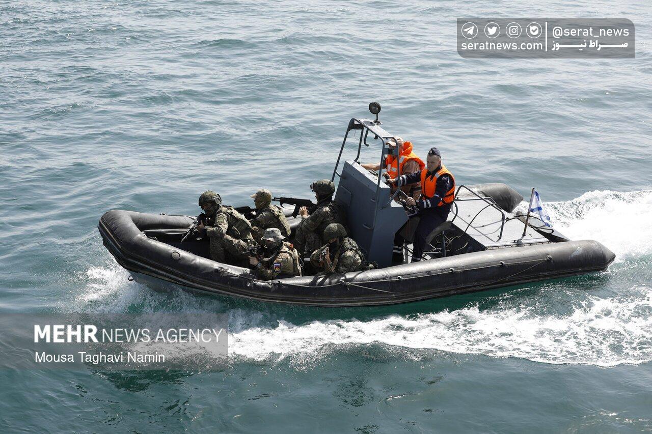 رزمایش مرکب دریایی؛ نیروهای دریایی جمهوری اسلامی ایران و فدراسیون روسیه در دریای عمان و منطقه شمال اقیانوس هند به میزبانی منطقه یکم امامت نیروی دریایی ارتش برگزار میشود.