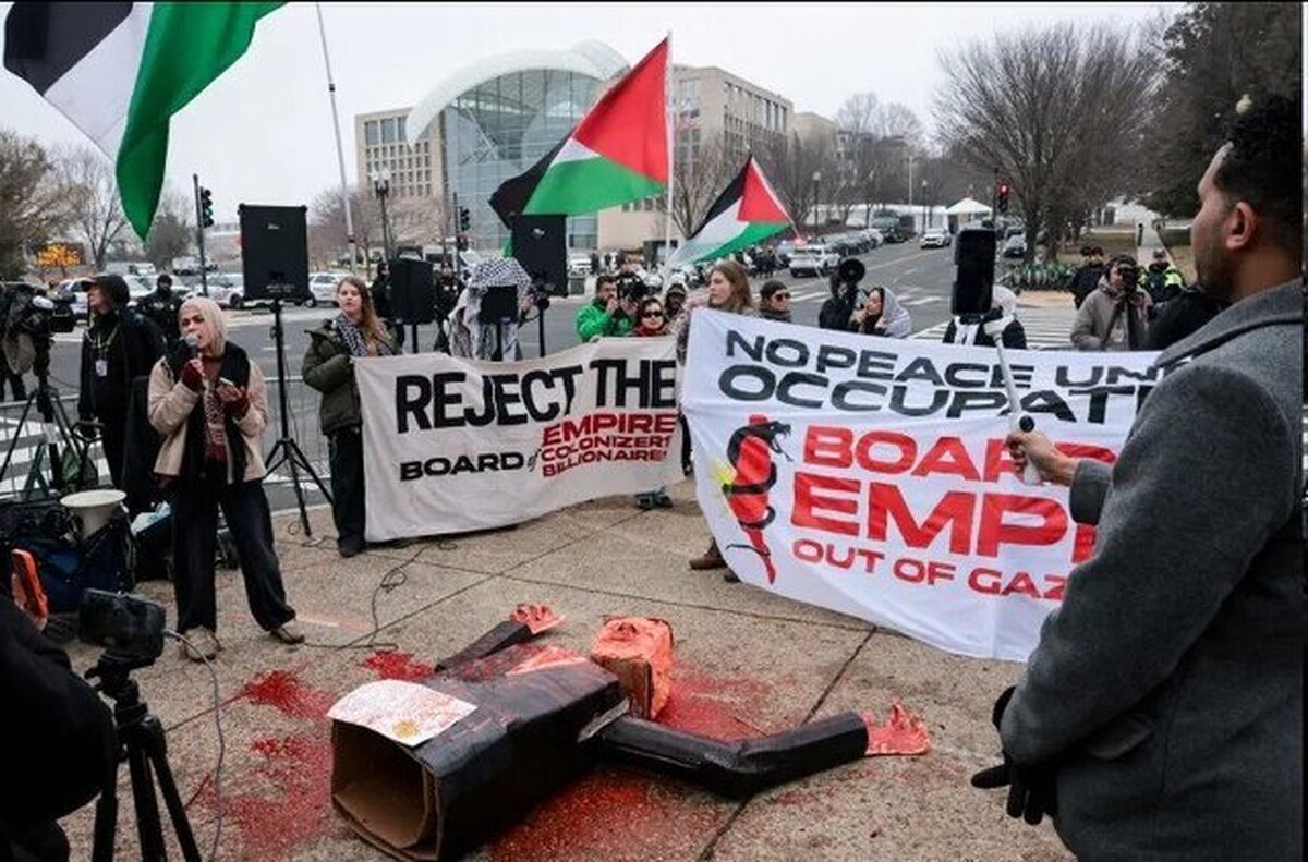 طبق گزارش خبرگزاری «رویترز»، معترضان در محوطه خارج از «موسسه صلح ایالات متحده»، جایی که جلسه شورای صلح در حال برگزاری بود، تجمع کردند تا به مشارکت رژیم صهیونیستی در این نشست اعتراض کنند.