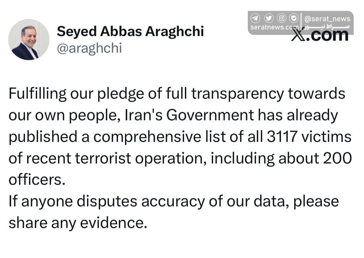 عکس | عراقچی خطاب به ترامپ: با مدرک صحبت کن