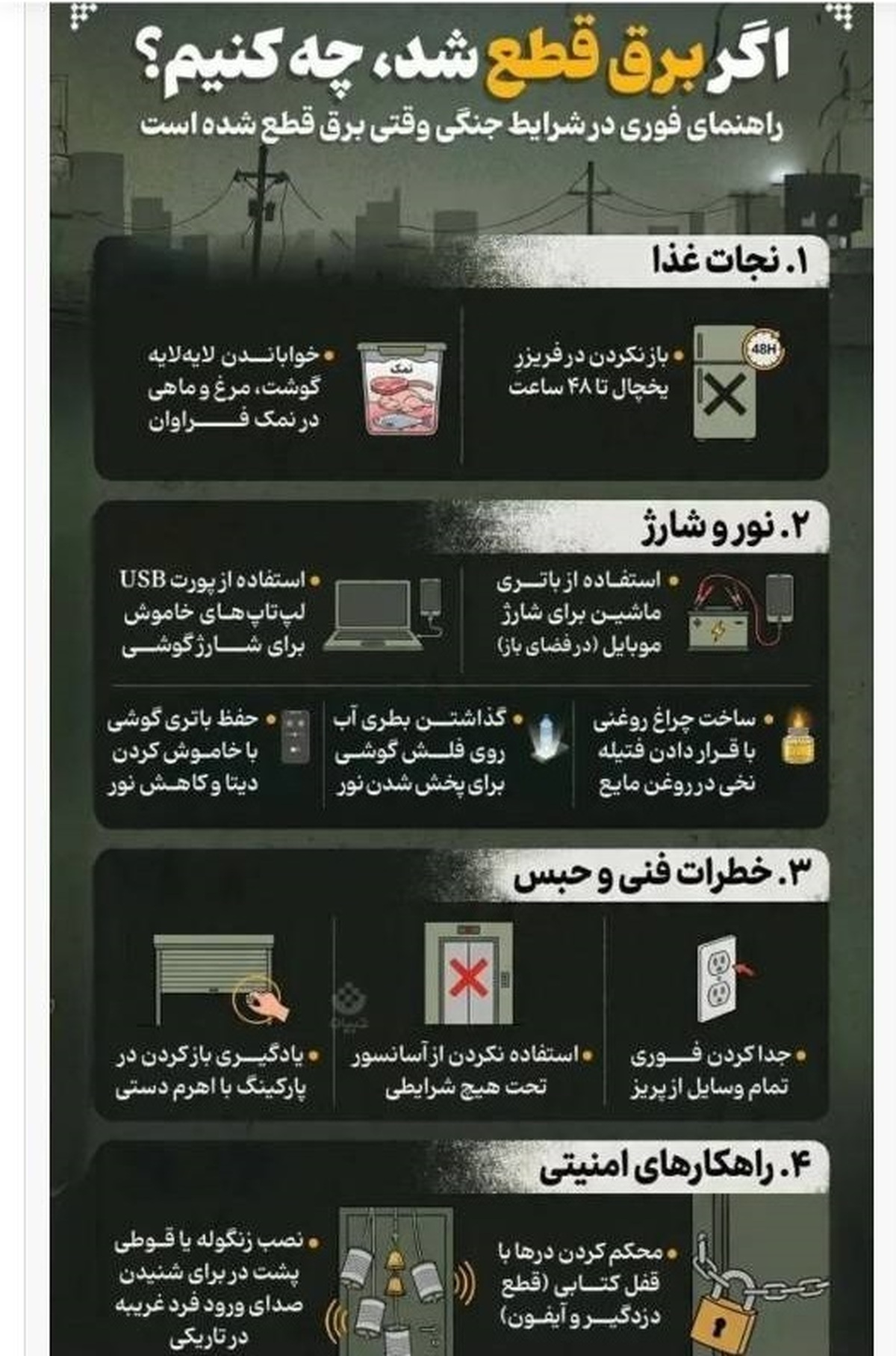 اگر در شرایط جنگی برق قطع شد چه کنیم؟+ اینفوگرافی