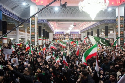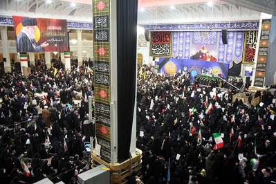 همچنین جمعیت قابل توجهی از مردم و زائران، در شبستان امام خمینی(ره) حرم مطهر بانوی کرامت با فرزند شهید ایران، وداع کردند.