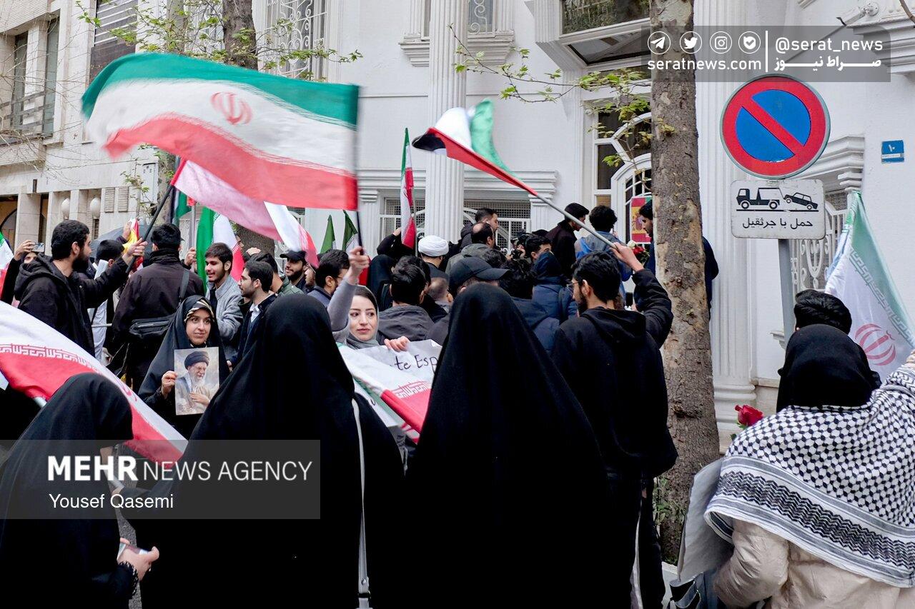 تجمع تشکلهای دانشجویی دانشگاههای تهران به همراه عدهای از مردم انقلابی شهر، به پاس مواضع دولت و مردم اسپانیا در حمایت از ایران و محور مقاومت، امروز ۸ فروردین ۱۴۰۵ مقابل سفارت این کشور برگزار شد.