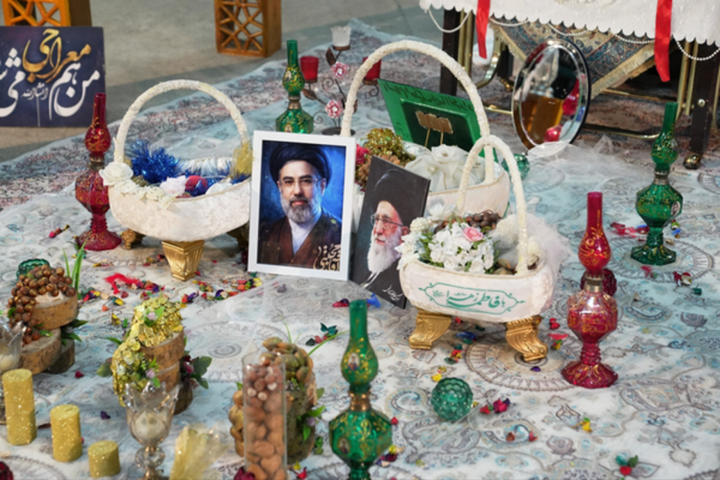 عروس و داماد پس از جاریشدن خطبه عقد، کنار پیکر مطهر فرمانده شهید سردار محمدعلی فتحعلی زاده حاضر شدند تا دعای این شهید بزرگوار برکت زندگیشان باشد.