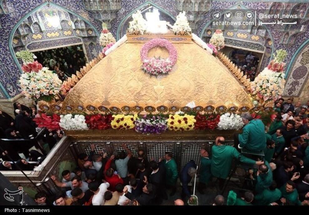 تصاویر| گلآرایی ضریح مطهر حرم حضرت معصومه (س)